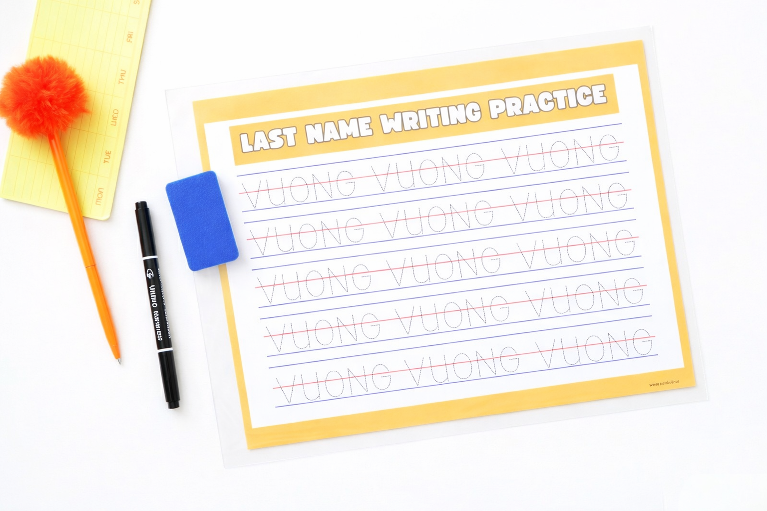 Including: 6 pages of customizable & laminated tracing worksheets + Bonus PDF version for unlimited photocopy.